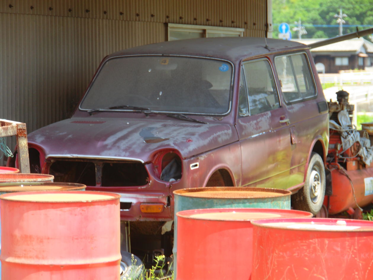 玉野市の荘内地区を散策していると、ちょっと古めかしい感じの車体がありました。