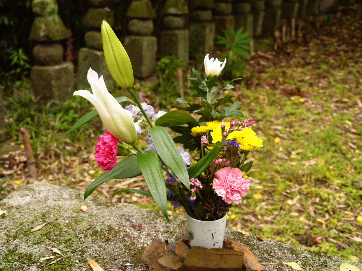 余談ですが私がまだ学生だった頃、この花を供えに来る女性が幽霊と間違われたという話がありました。