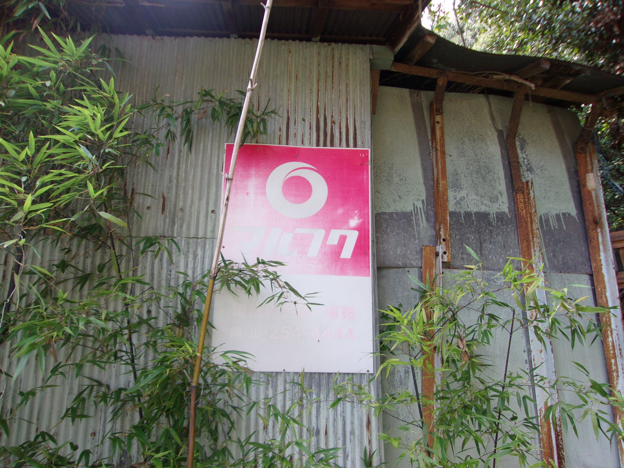 この道の途中に月極の駐車場が有り、そこになんとほぼ向かい合わせ…正確には斜向いの状態でマルフクの看板があります。