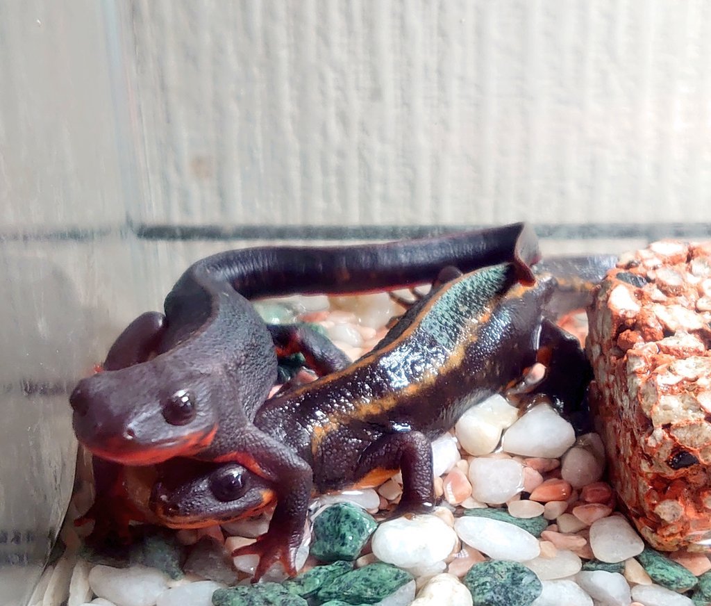 なんとなく下に潰されているイモリの方が嫌そうな顔をしている…、そんな気がしないでもありません。