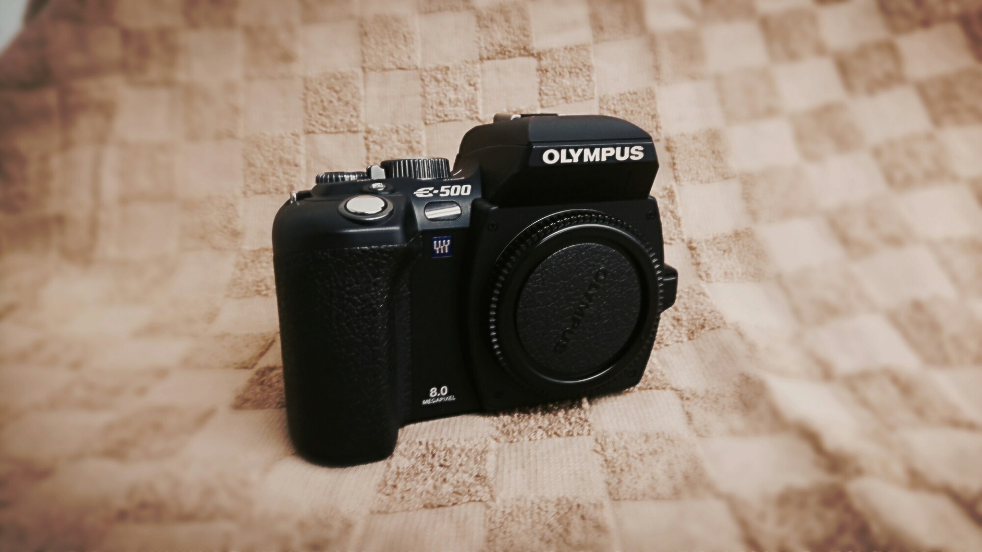 状態のいい中古がなかなか出回らずに嘆いていたら、たまたまE-500を昔使っていた知人が譲ってくれたのです。