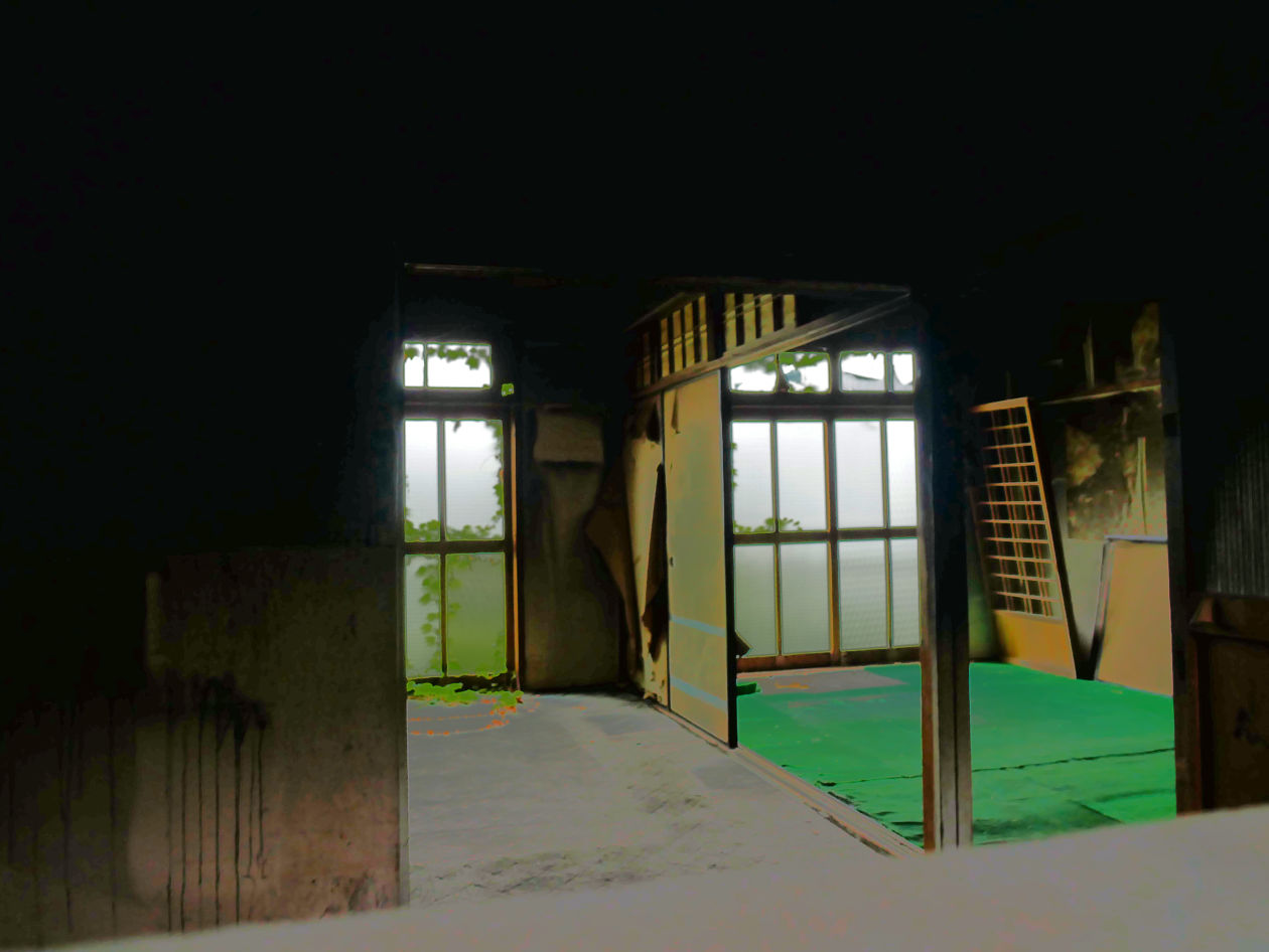 ところで一部に窓が割れている部屋があり、人の住んでいない部屋だとも教えてもらえたので中を撮影してみました。