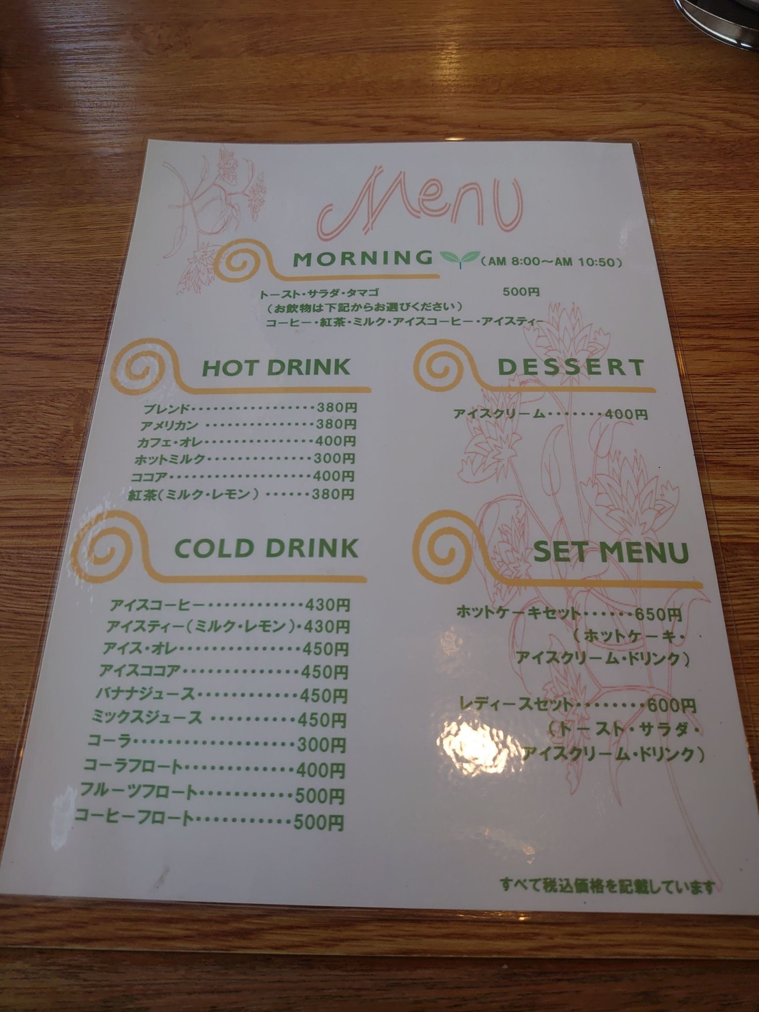 飲み物はコーヒーを中心に豊富ですが、デザートについてはアイスとホットケーキくらいです。