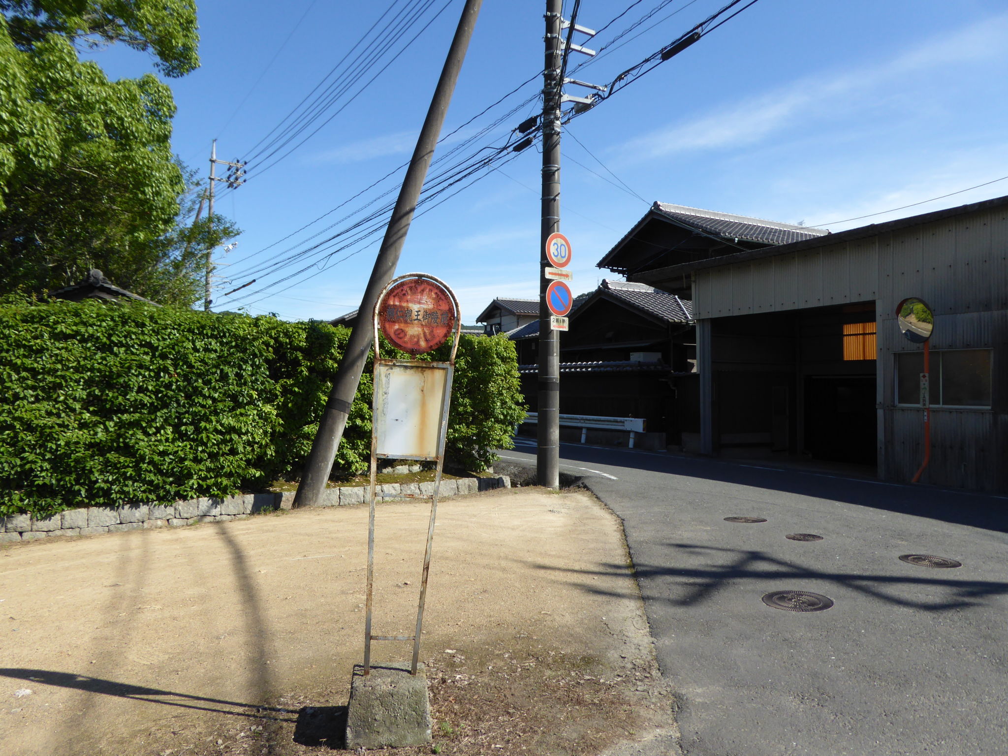 どうやら今はこの路線は運行されていないようですが、標識版だけは今も残されています。