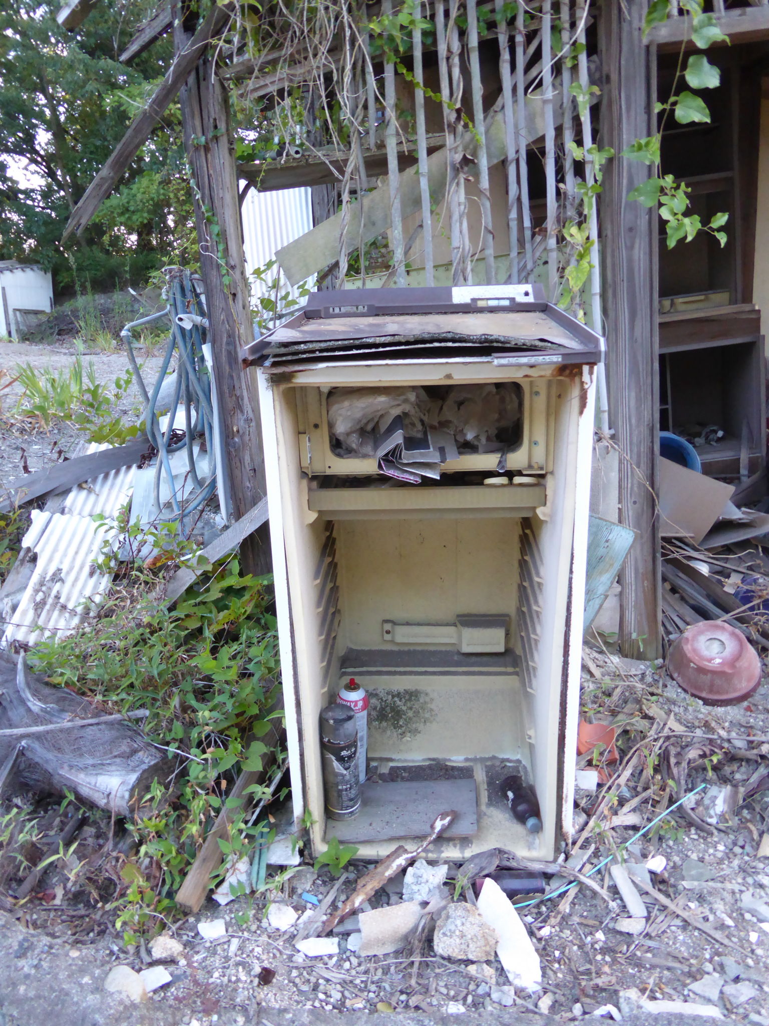 これは棚として使われていたようで、扉は外されて中にスプレーなどが残されていました。