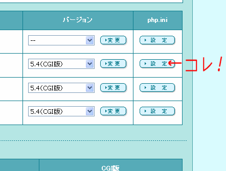 上の画像のように、PHP設定というメニューがあるのでクリックします。