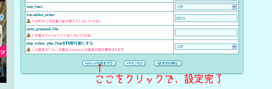 選ぶだけでは完了していないので、下の方にある【php.iniを設定する】をクリックして、設定完了です。