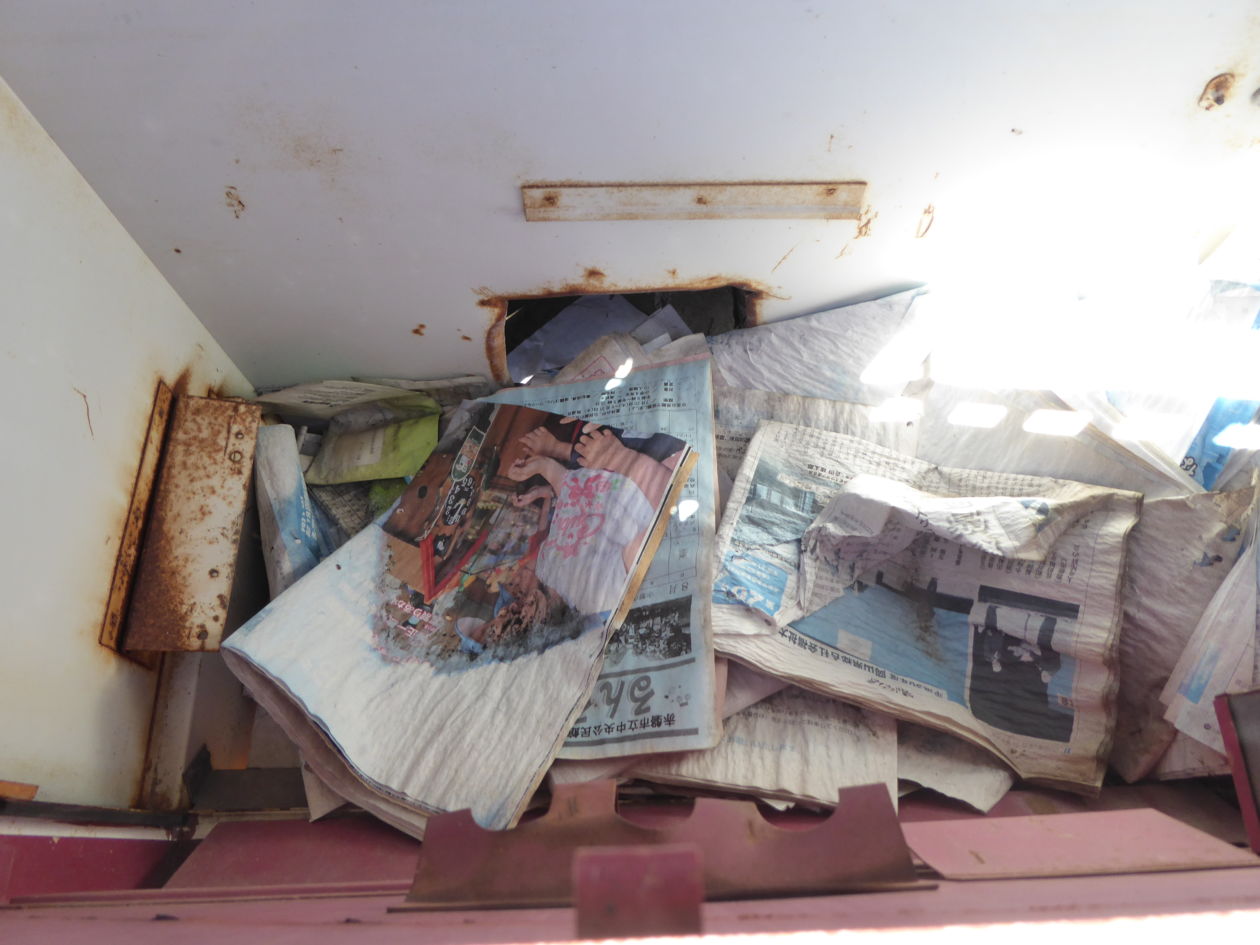 そうなった後はポストとして第二の人生を歩むことになったようで、大きく郵便マークが書かれ、中には広報誌などが残されていました。