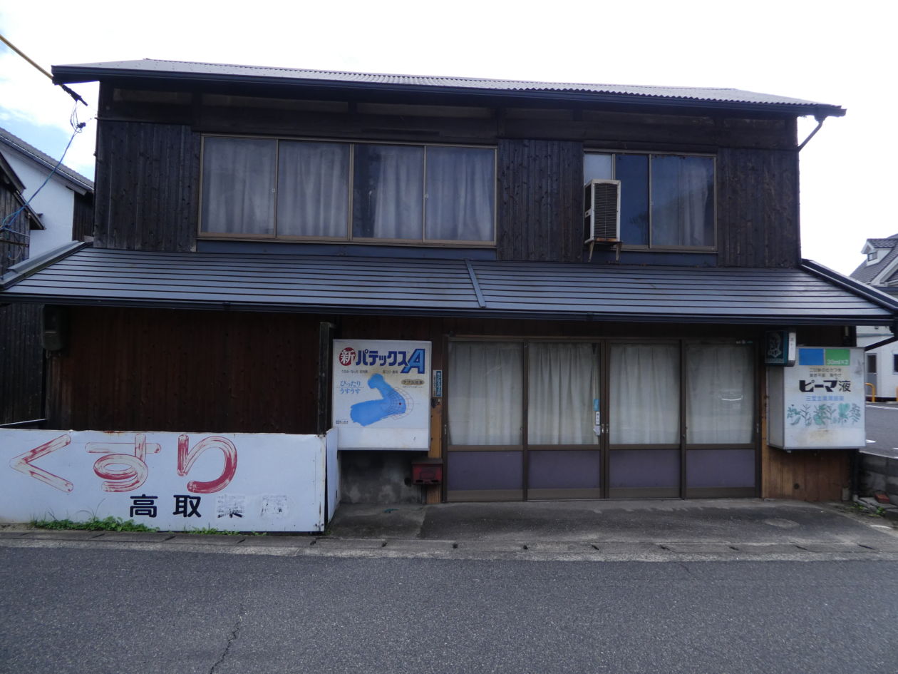 岡山市南区、彦崎駅前を散策していると昔ながらの佇まいの薬局の建物を見つけました。
