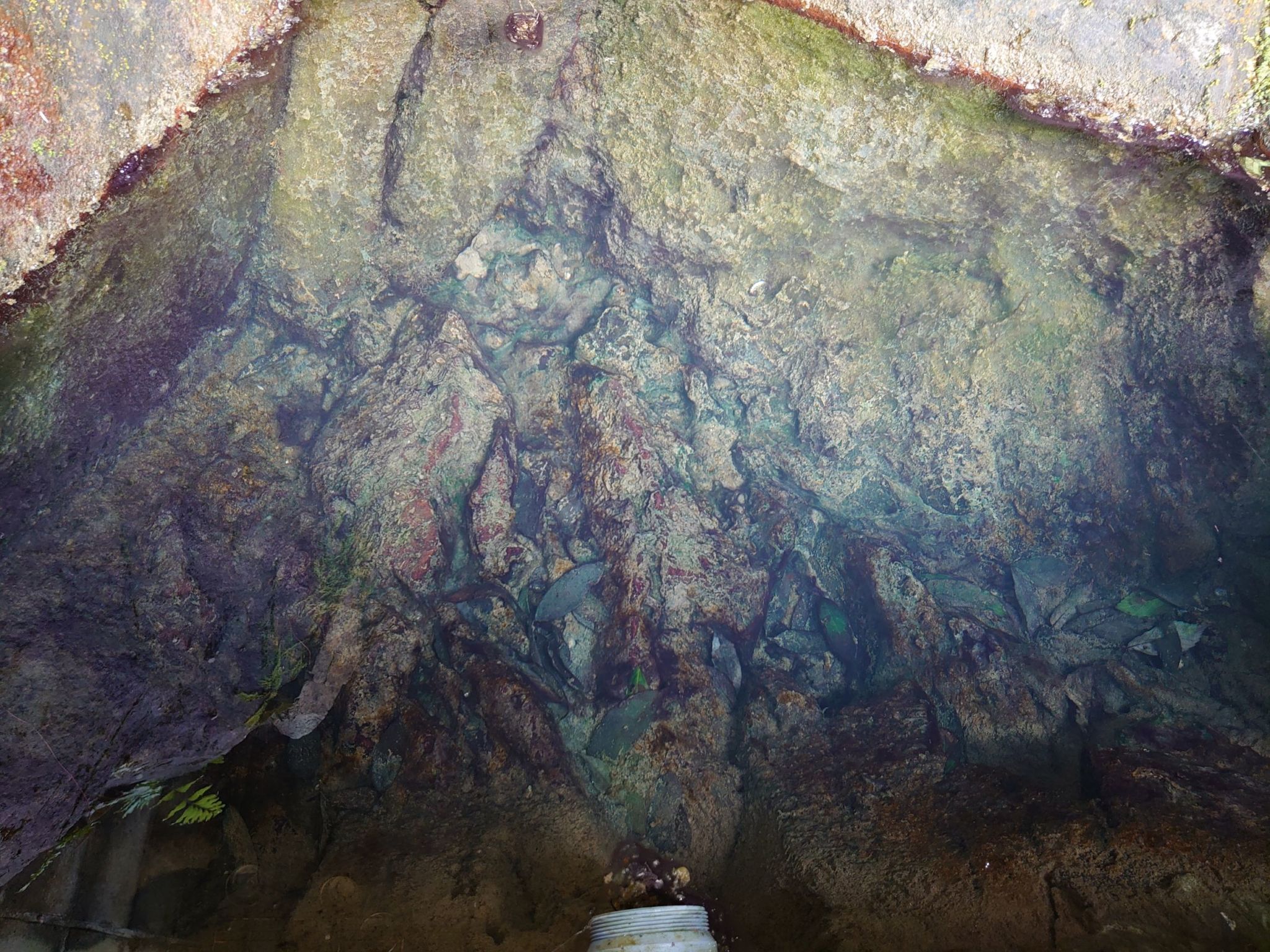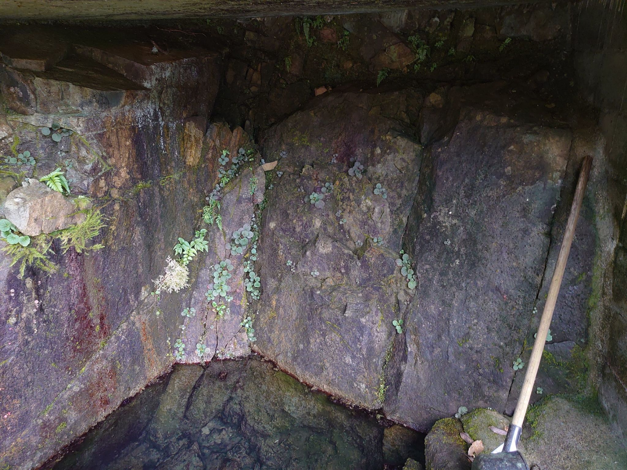 手水舎の内部はこのようになっており、自然の湧き水で手や口を清めるようになっています。