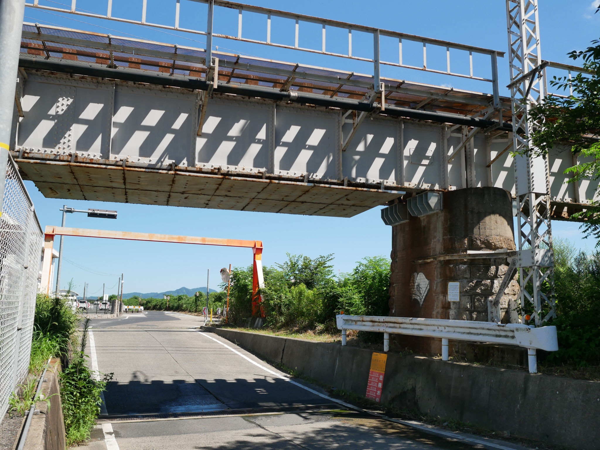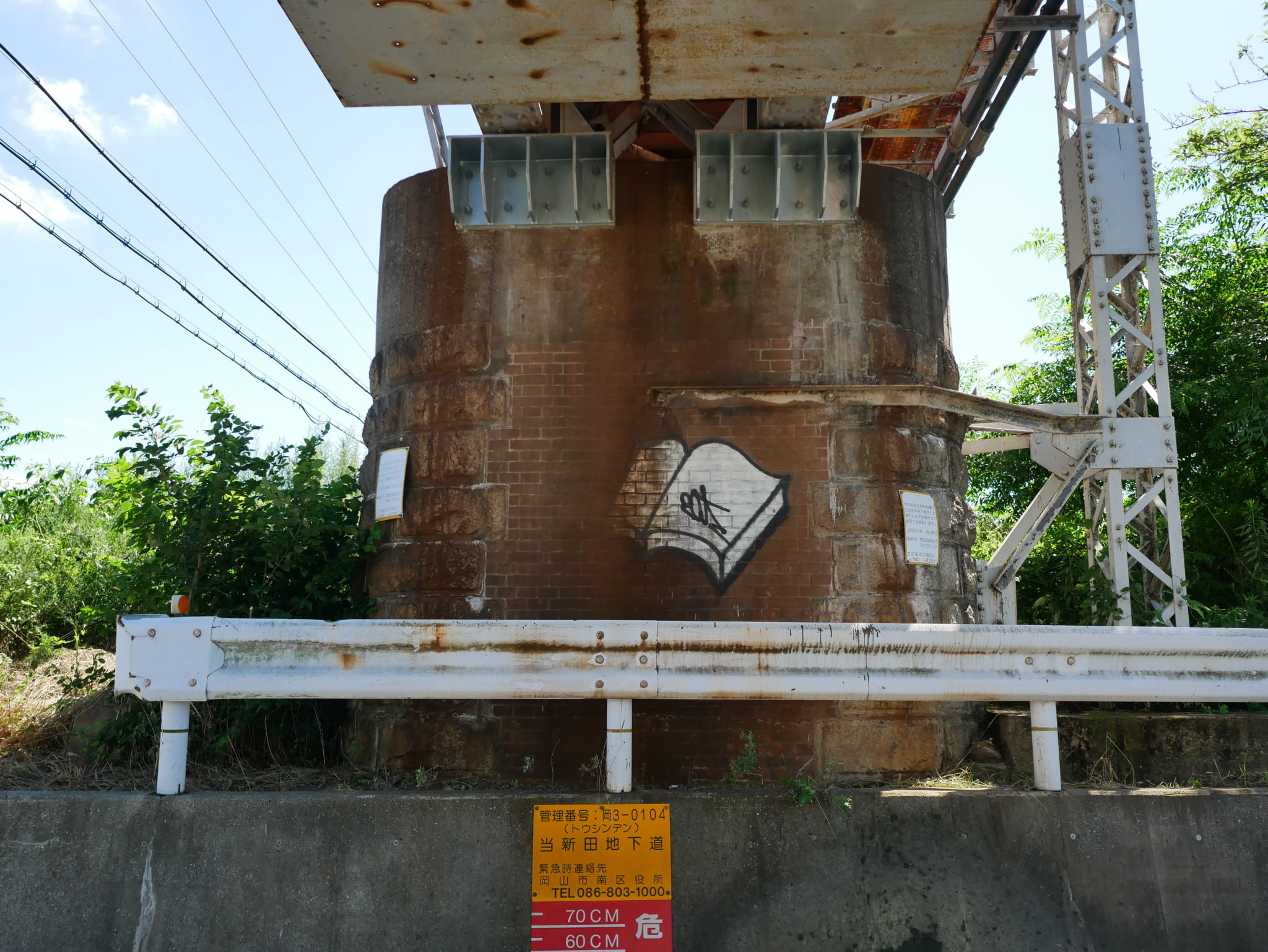 落書きが悔やまれます。私の反対側にも煉瓦製の橋脚があるのが伺えますが、暑い時期だったので草に覆われてその姿は殆ど見えませんでした。(※一つ上の写真の右端の辺り)