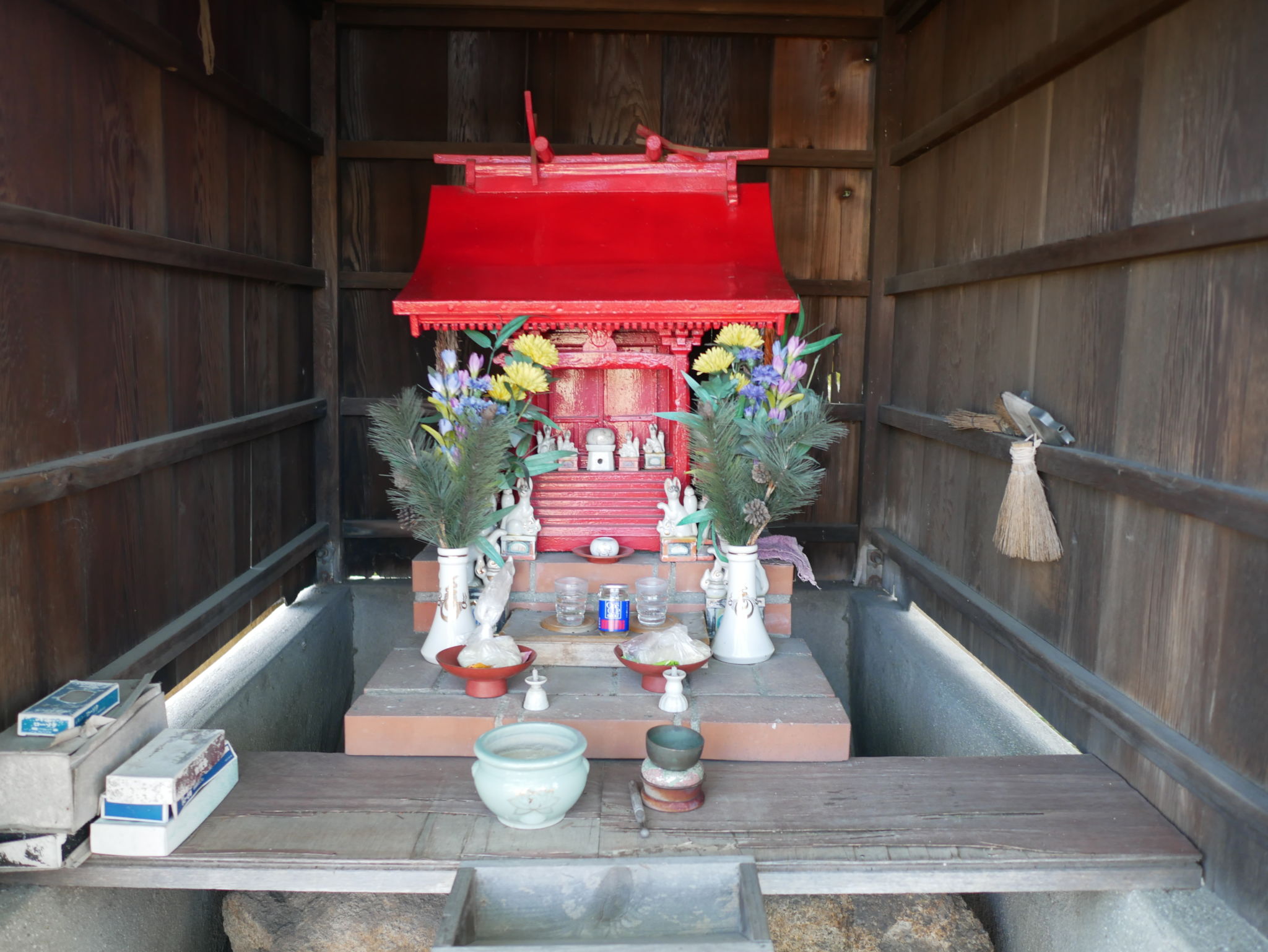 町内会の紹介文を読む限りでは当初は漂着した厨子のままで祀っていたようですが、現在の神社を観る限りでは新しいものに交換されたように見えます。
