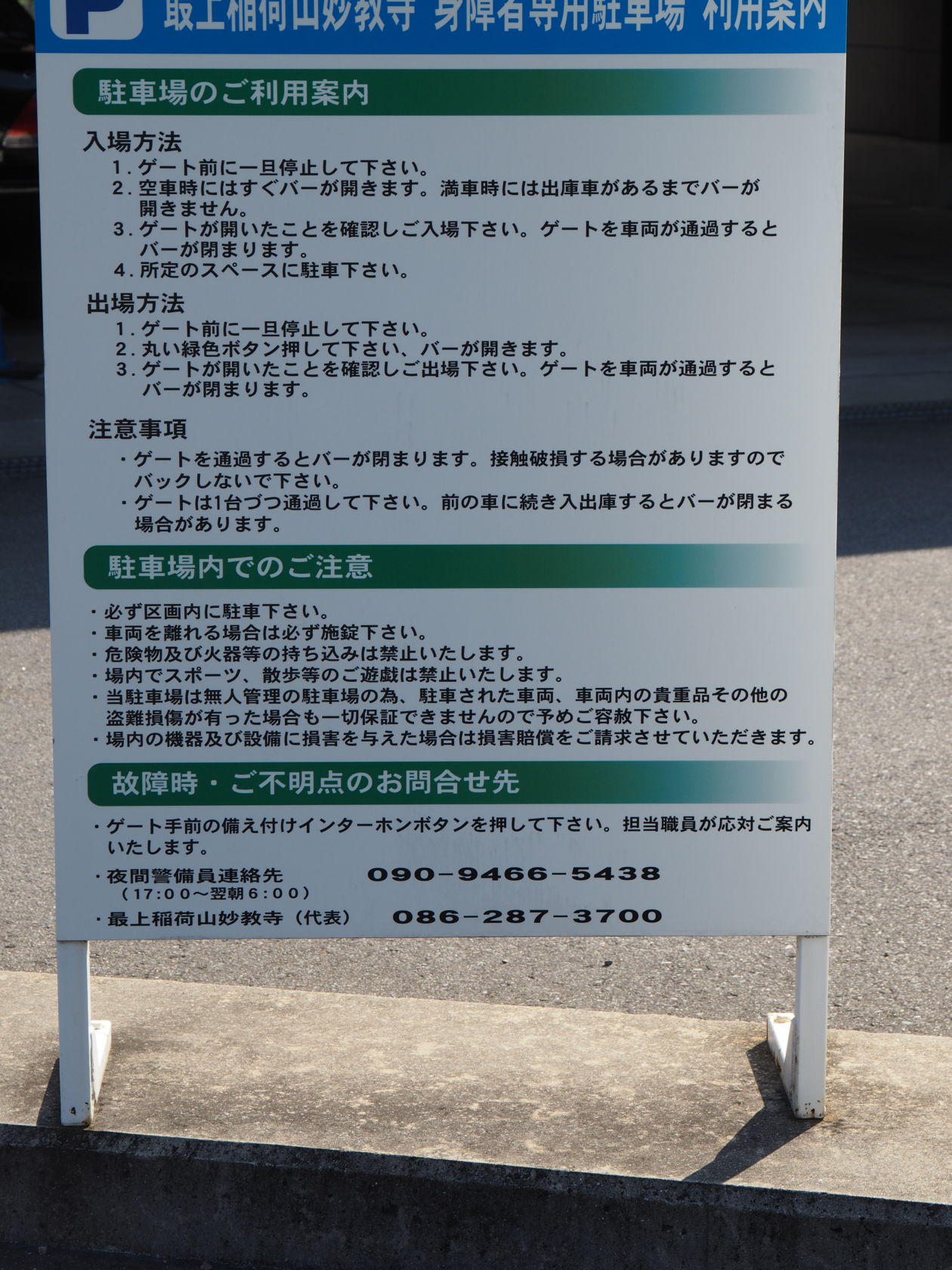 ※最上稲荷障害者用駐車場について解説しています。