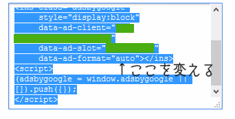 これを元々のソースコードを貼り付けた後で書き換えます。