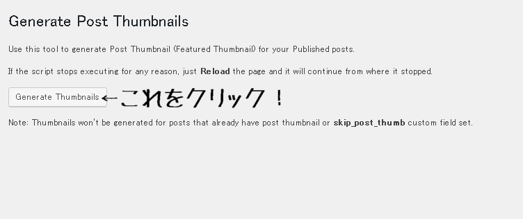 上の画像のようなページに移動するので、ここでGenerate Thumbnailsというボタンをクリックします。