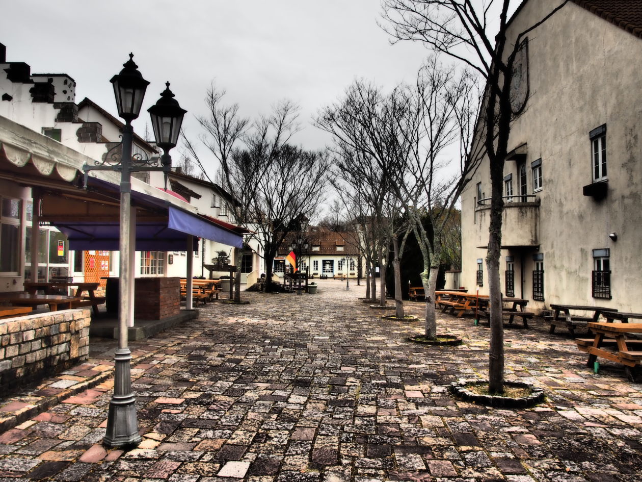 お昼の時間帯からは外れていたので人がいなくて当然ですが、空模様が妙な迫力をつけます。