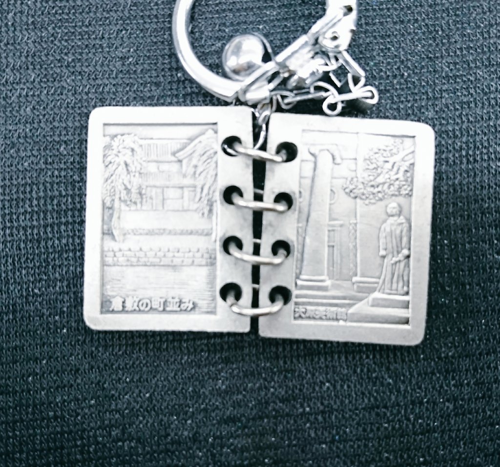 倉敷美観地区を代表する倉敷川沿いの町並みと、大原美術館の玄関のイラストがあります。カレーの市民もしっかり描かれています。