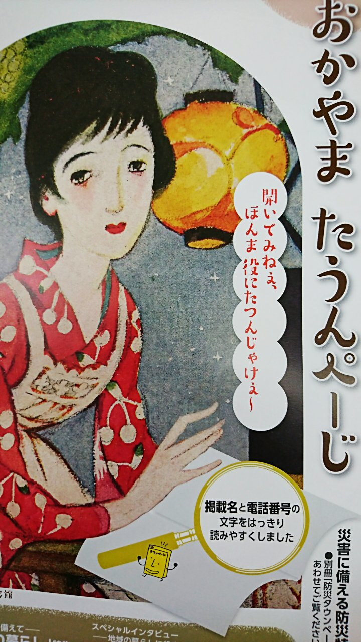 2017年 夢二の岡山タウンページ 2017年9月5日 by Okayamania2017年の岡山県のタウンページは竹久夢二のイラスト。 【おかやま たうんぺーじ】というタイトルも大正レトロっぽくていい感じですね。この記事を読んだ方はこんな記事も読んでいますこちらもお勧め 【岡山市】植松で大きなヒョウタンとナスビのオブジェを見つけたよ!