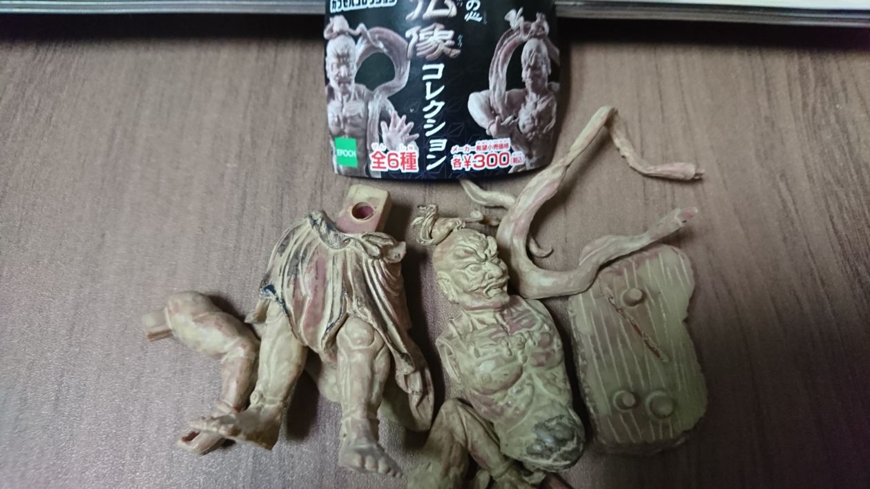 仏像ガチャしてみたよ! 2018年4月9日2017年9月21日 by Okayamania先日、スーパーで買い物をした際に見かけた・・・コレ。仏像ガチャ!おぉぅ…、仏像がバラバラになっておる!これを組み立てて、仏像に作り上げます。じゃーん。意外とリアル(笑)。 忠実に木が再現されています。カラーの仏像もあるようですが、たぶん当りの種類なのでしょうね。カッコいい。 この記事を読んだ方はこんな記事も読んでいますこちらもお勧め オハヨー乳業ブルーベリーのむヨーグルト飲んだよ!