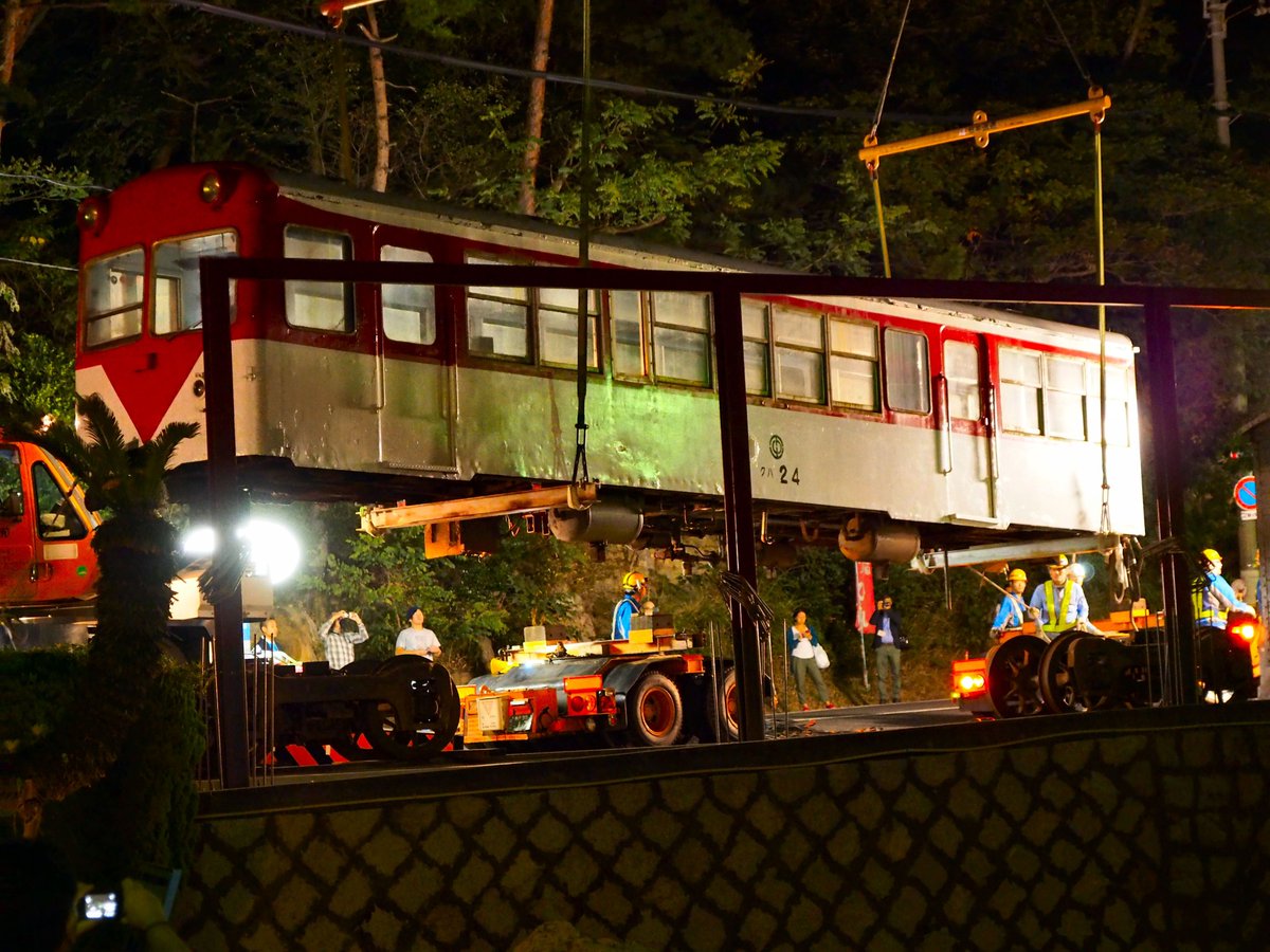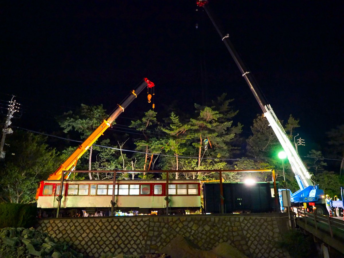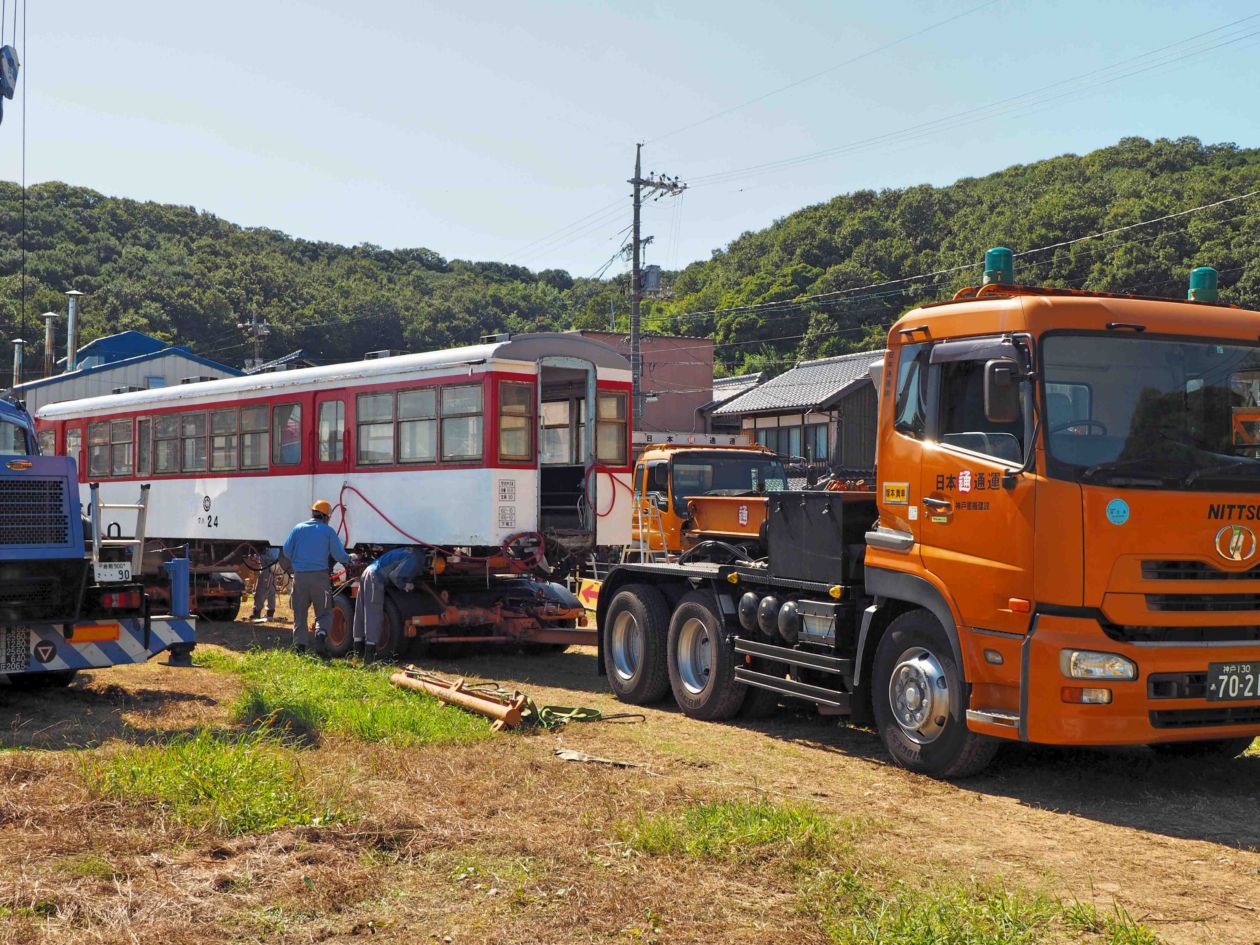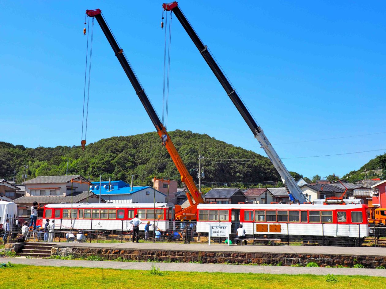 倉敷市の下電ホテルへ、同社がかつて持っていた鉄道路線の車両を移動させる【下津井電鉄客車移設プロジェクト】を見学しに行ってきました。