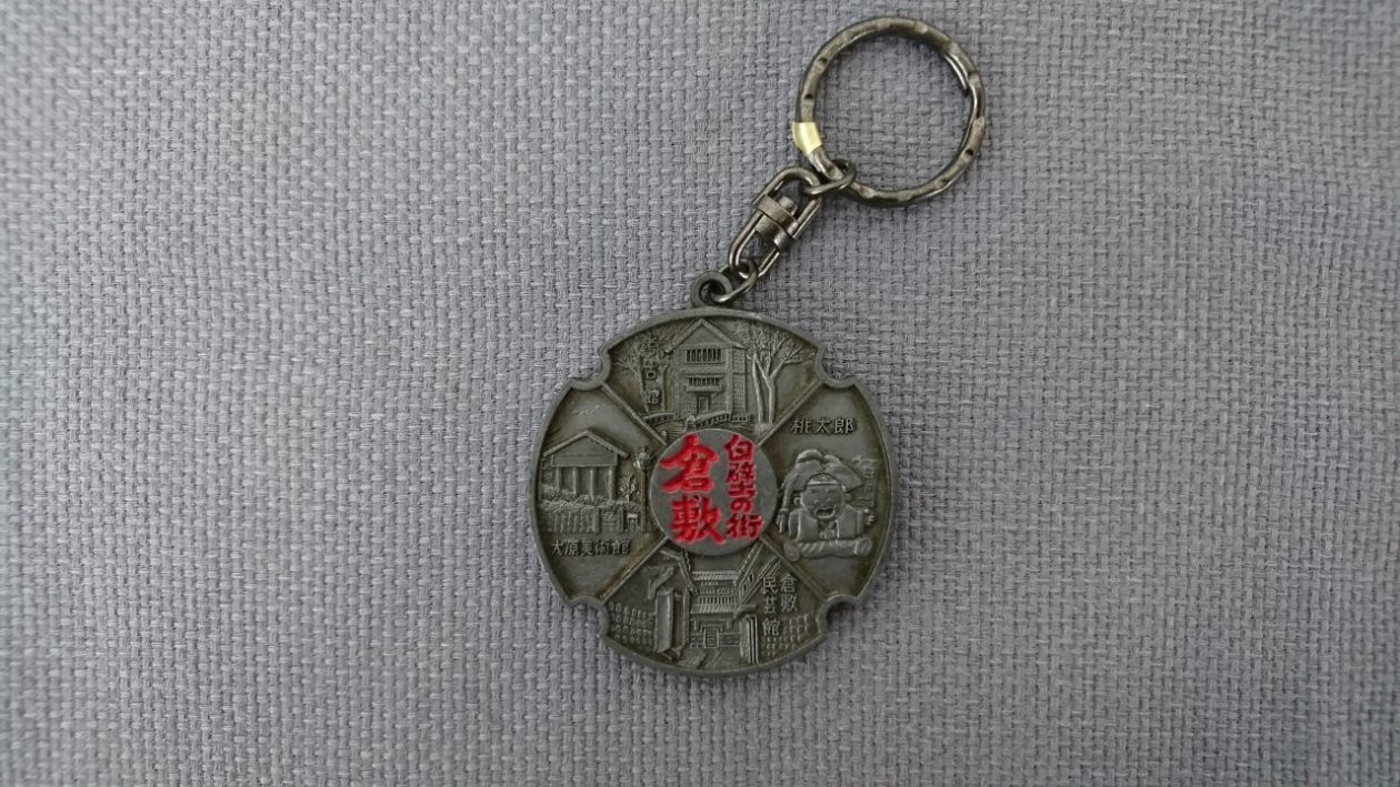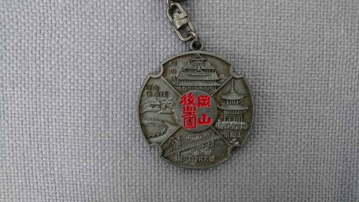 先日、おみやげ物の店に入ったら倉敷と岡山が両面に描かれたキーホルダーがあったので買ってみました。