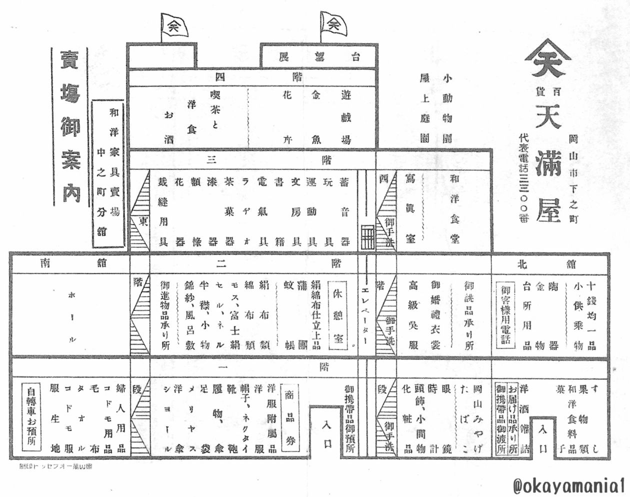 戦前の天満屋岡山店のフロアマップがありました。