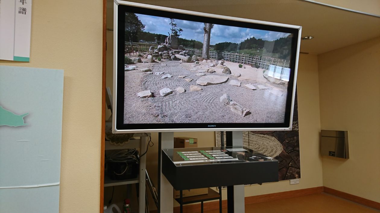 建物の正面左側も重森三玲さんについての展示室になっており、映像による案内も視聴可能です。