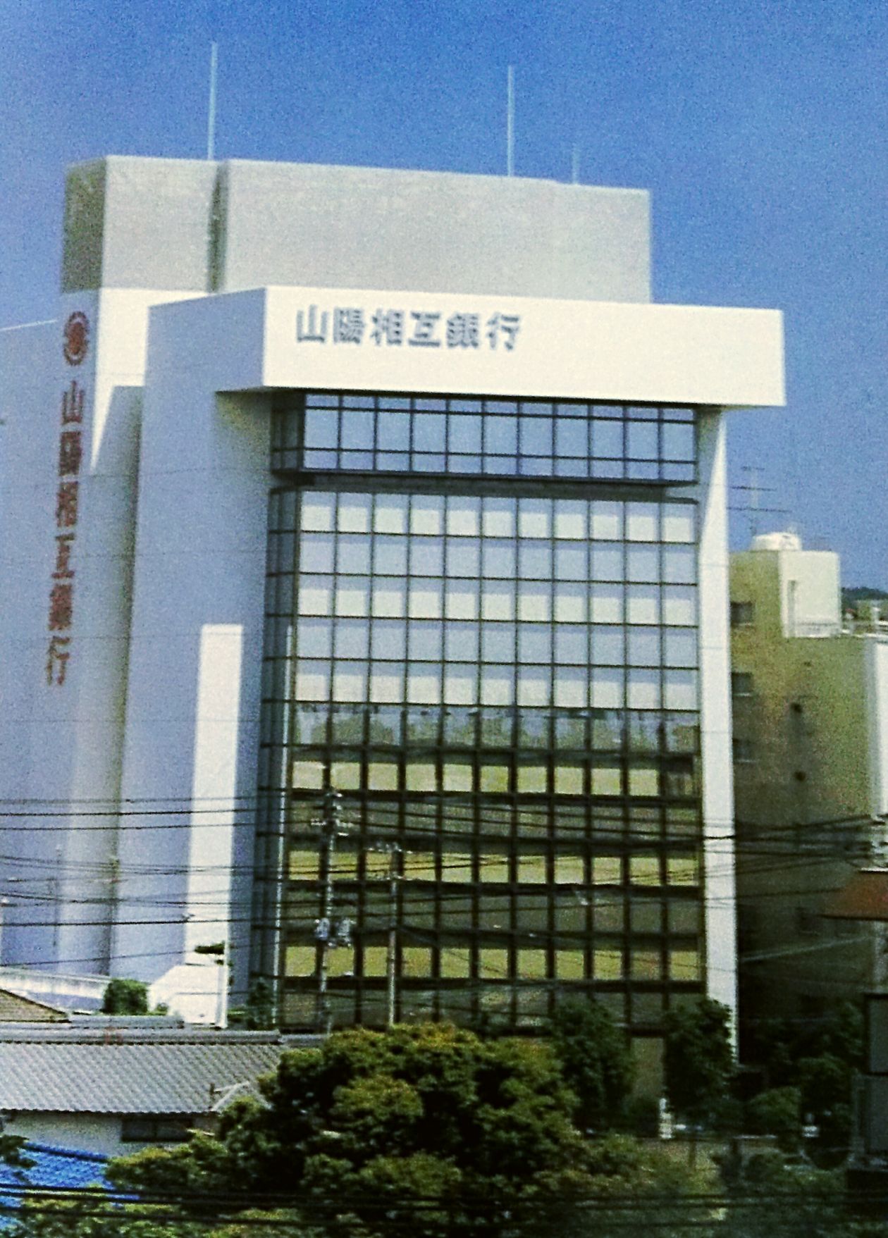 よく見ると現在はトマト銀行の社名とロゴがある部分に山陽相互銀行の名前が掲げられています。