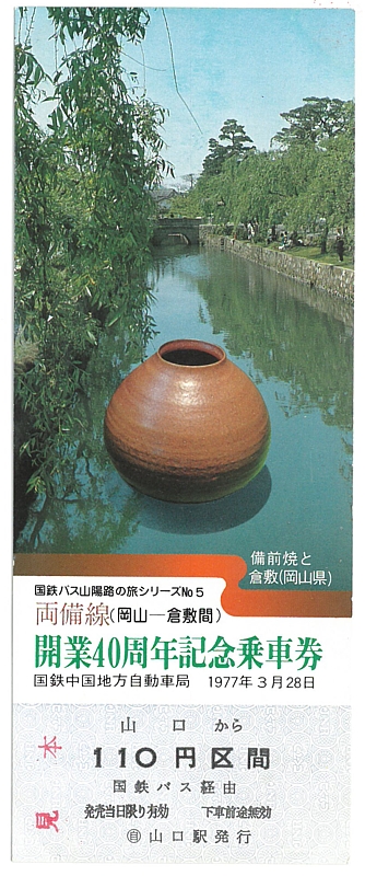 …これはバスの両備線が開業40周年を迎えた事を記念して発行された乗車券です。