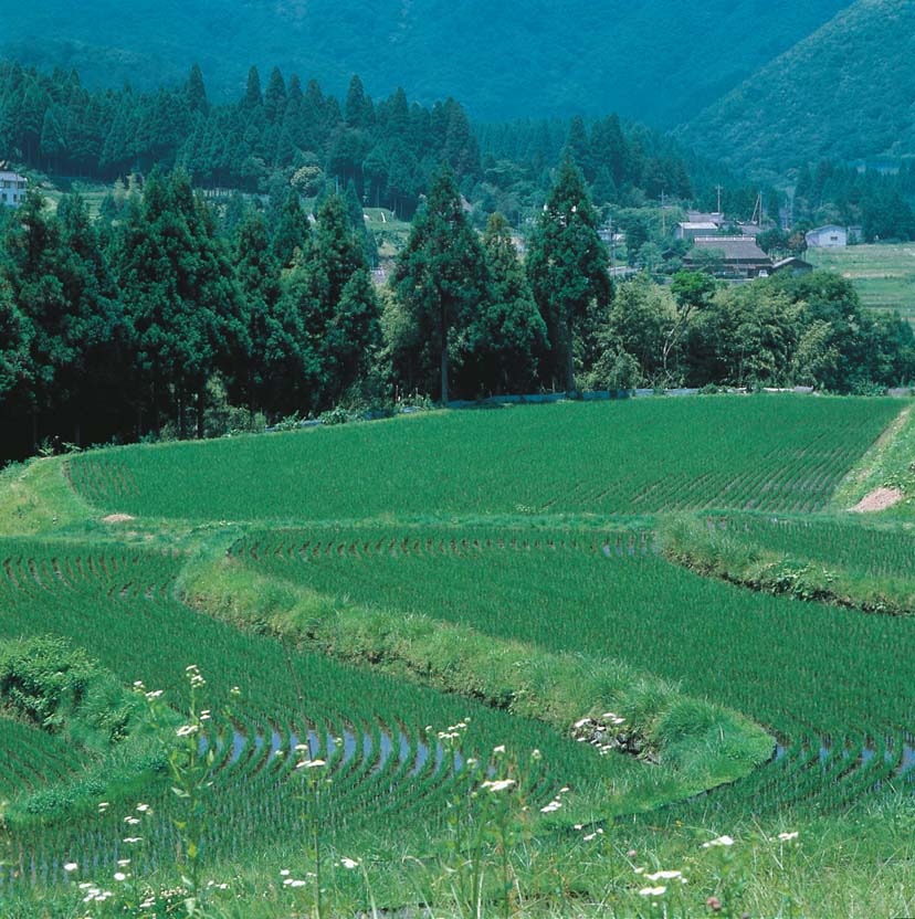 茅葺き屋根の建物m石畳、水車といった昔ながらの山里の風景を残している地区です。