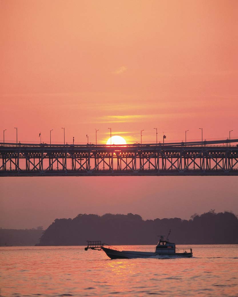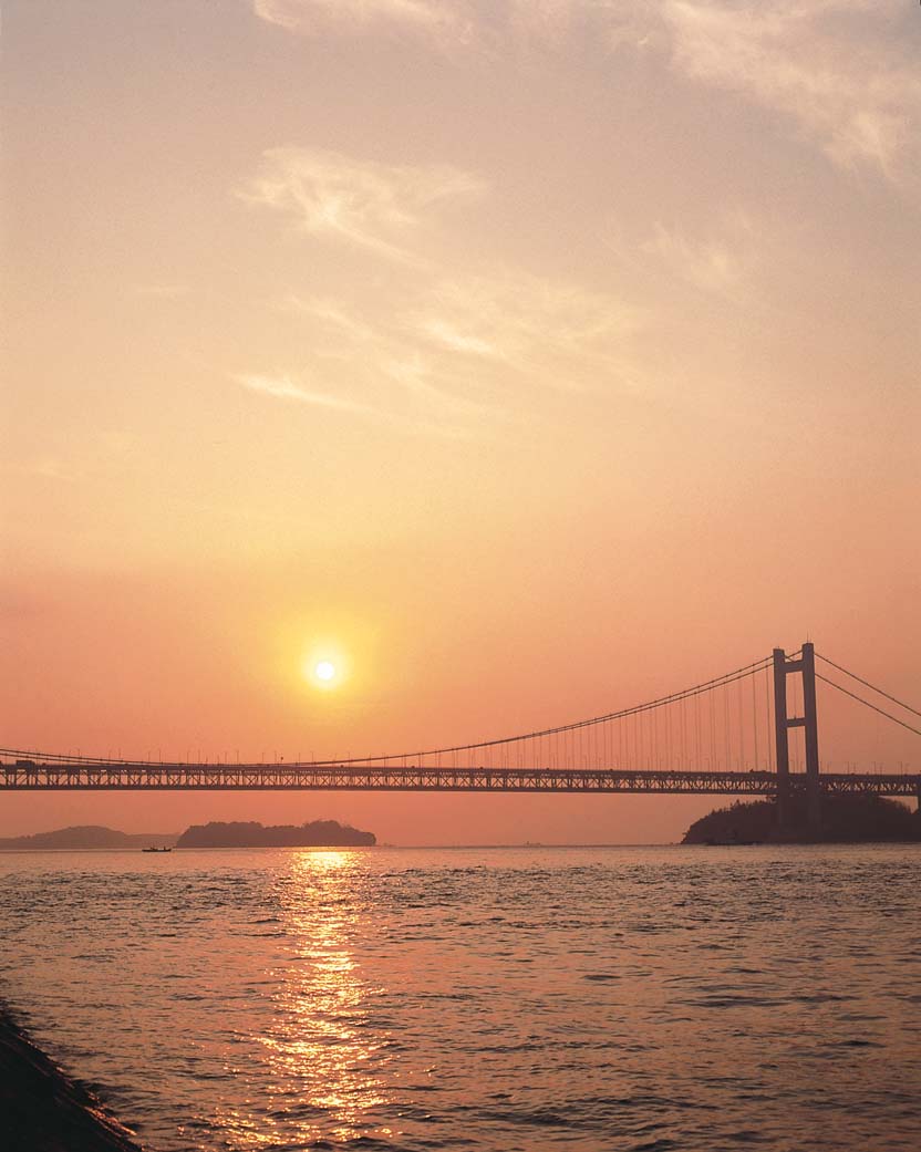 瀬戸大橋と朝焼けの写真がありました。