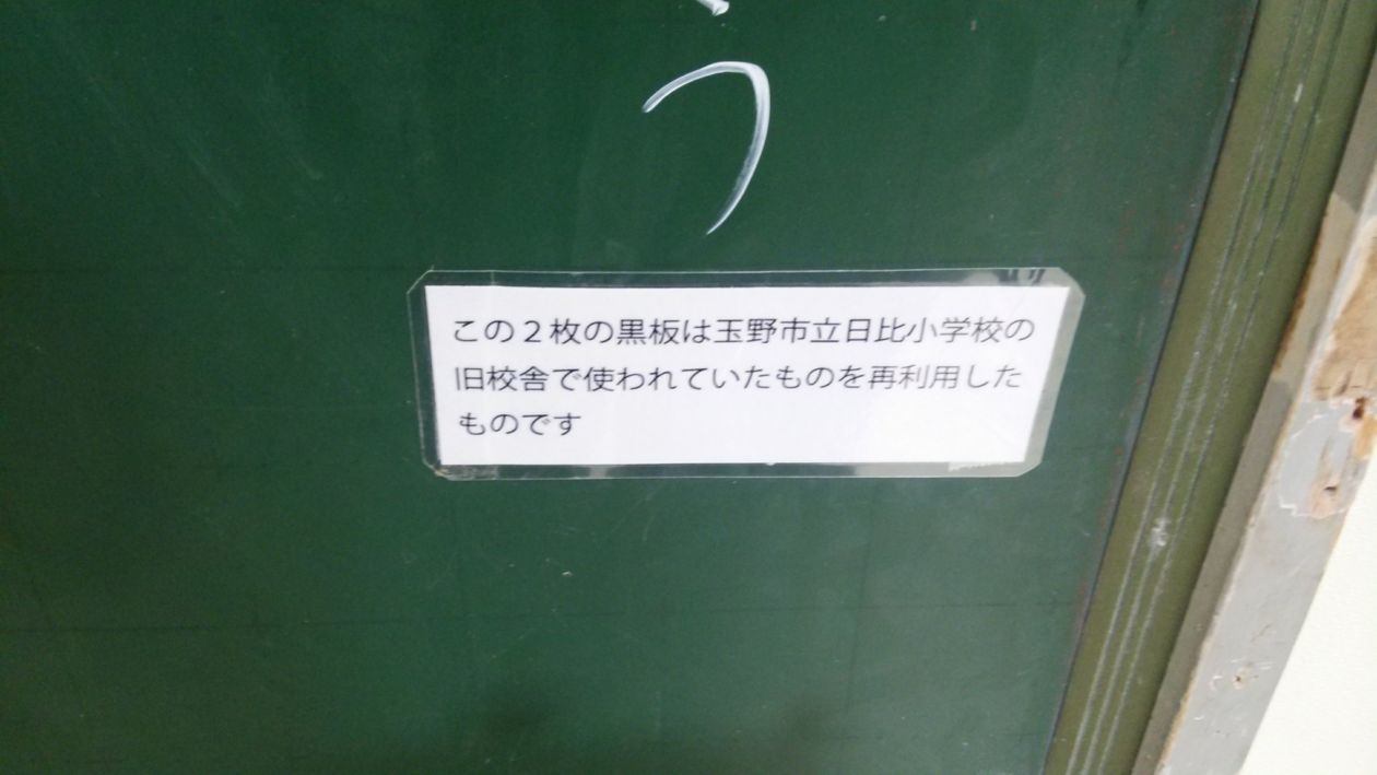 旧文化センター内にあった郷土資料展示室の展示品は倉庫に片付けられたままのようですが、この黒板も一緒に片付けてあるのでしょうか。