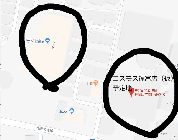岡山市南区豊成3丁目にコスモス福富店が出店するそうです。