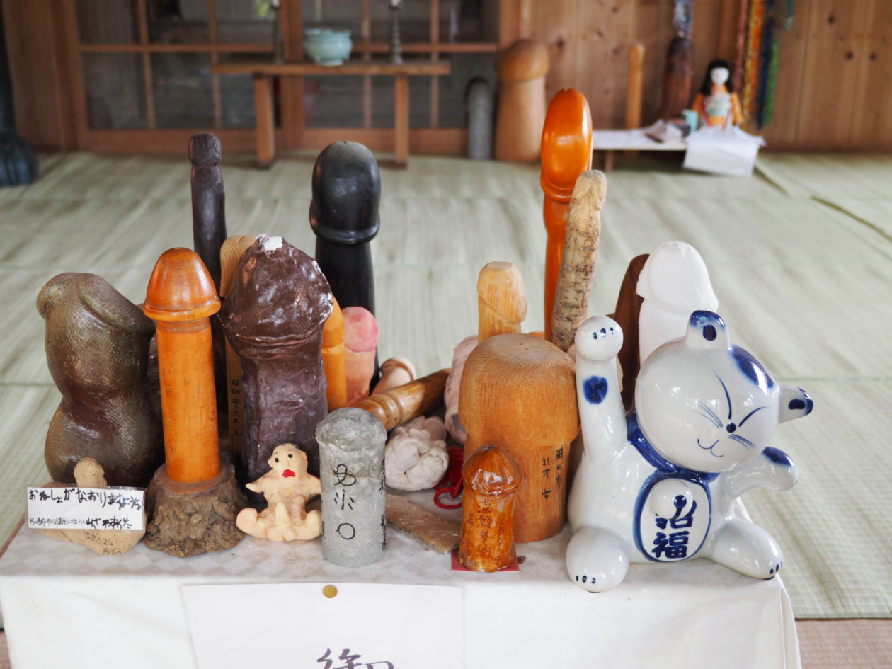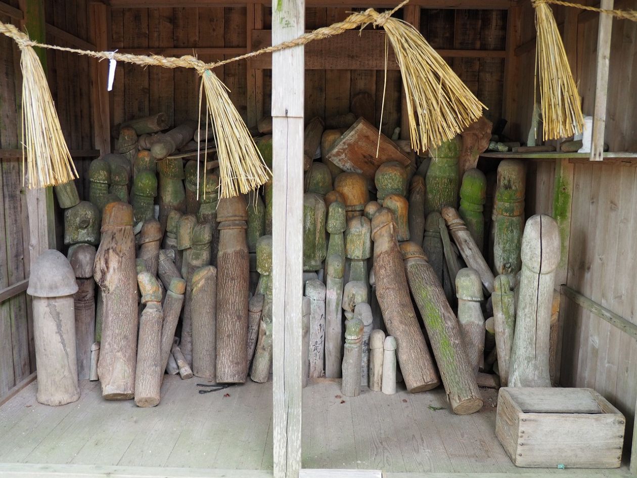 ここへ参拝して願いが叶った際には男根を作って奉納する風習があり、その為に境内には無数の男根が奉納されています。