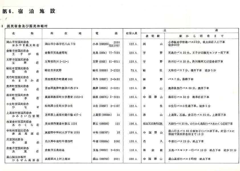 1977年の岡山県内にあった国民宿舎と国民休暇村の一覧です。