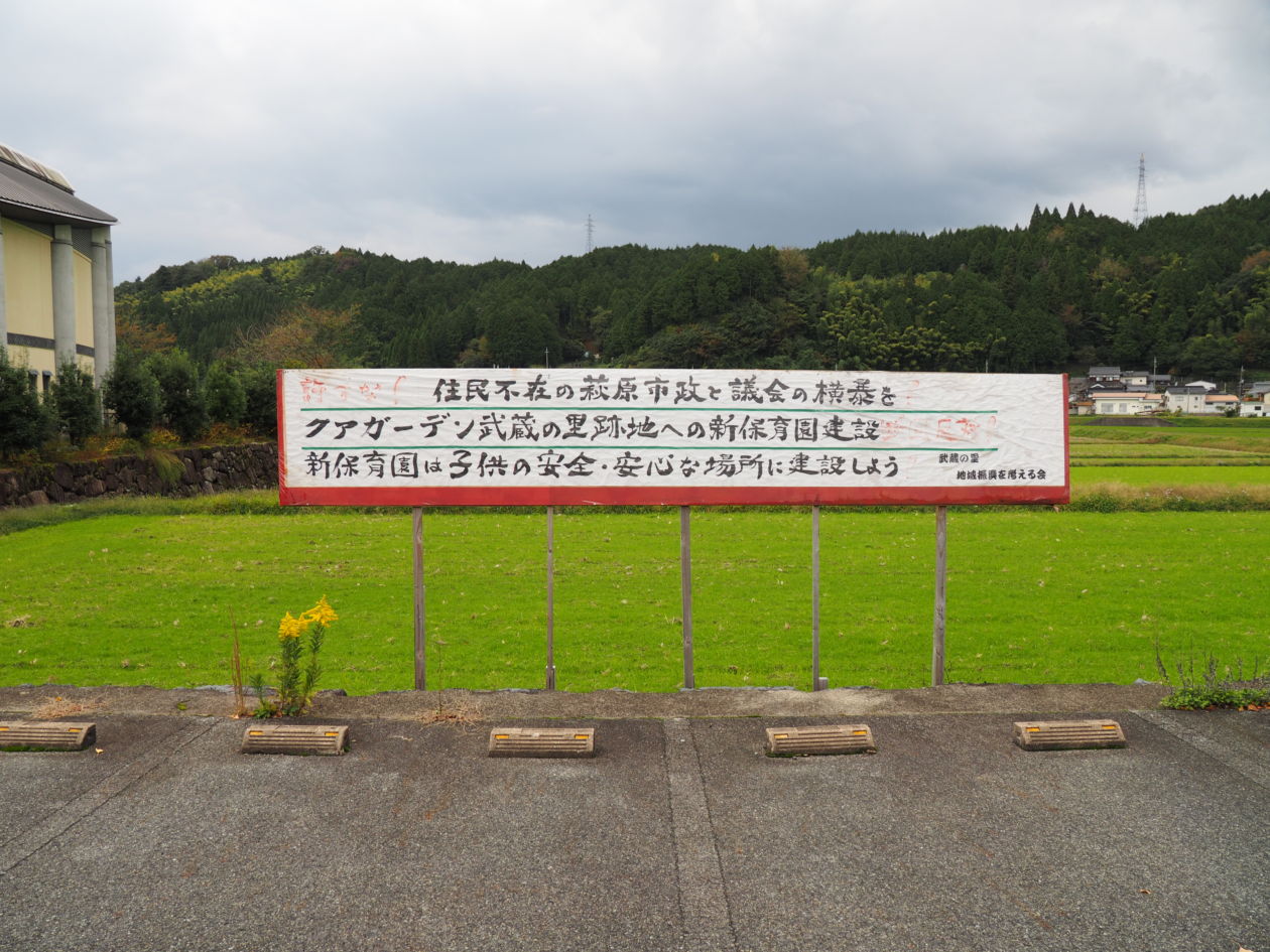そして保護者会からは新保育園の場所として宮本周辺を求めた事から、施設が残されたままになっているクアガーデン武蔵の里の跡地が候補地に挙げられました。