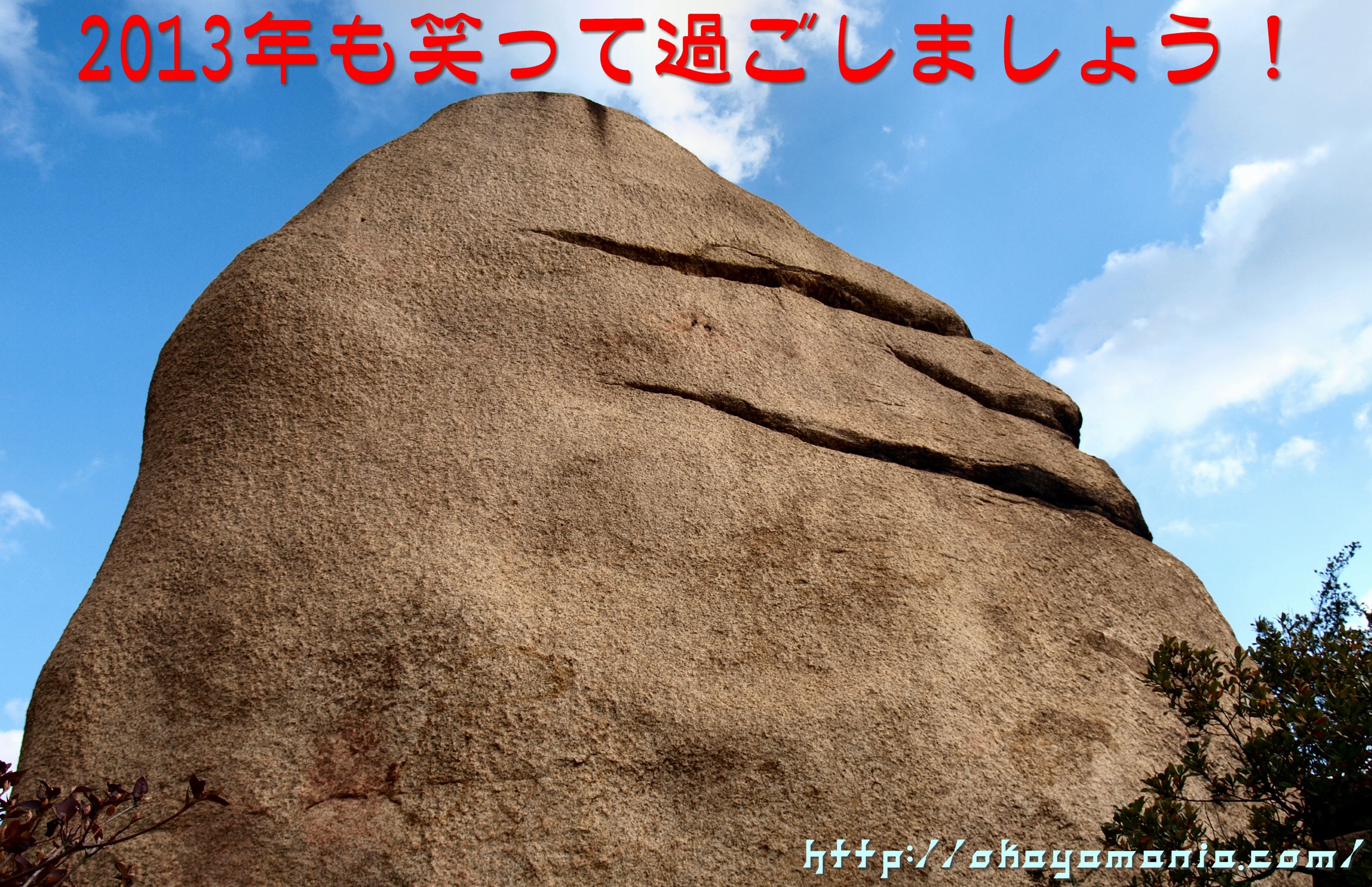 毎年、岡山の画像を使っていて、ここ三年は旧児島駅ホーム、道の駅のZガンダム、そして今年は王子が岳のニコニコ岩です
