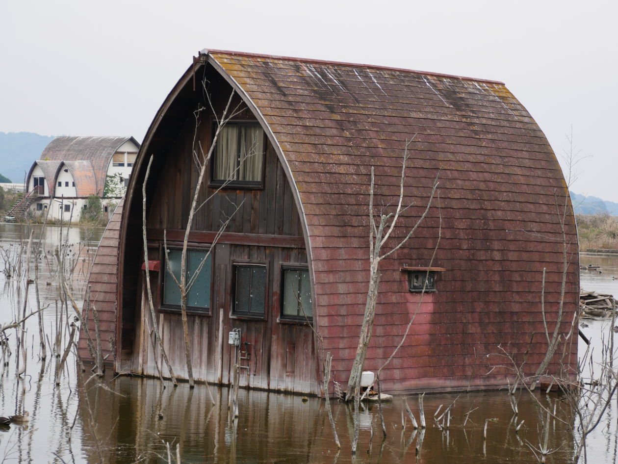 とは言っても建物の中にも浸水はしているでしょうし、柱などが限界を迎えたら一瞬で崩れてしまうのかもしれません。