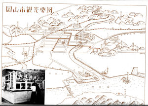 1951年~1952年(昭和26〜27年)頃の岡山市街地を描いた、興味深い観光地図を見つけました。