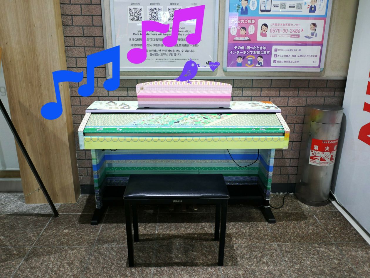 電子ピアノというのかな、小いピアノが構内に設置されています。