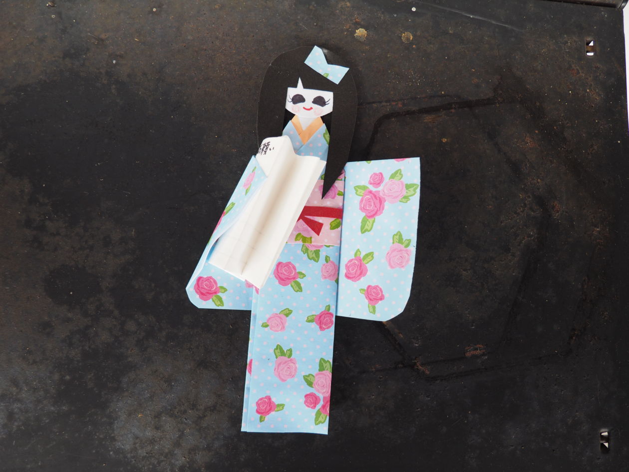 まずこの人形の持つ紙を広げて願い事を書き込ます。