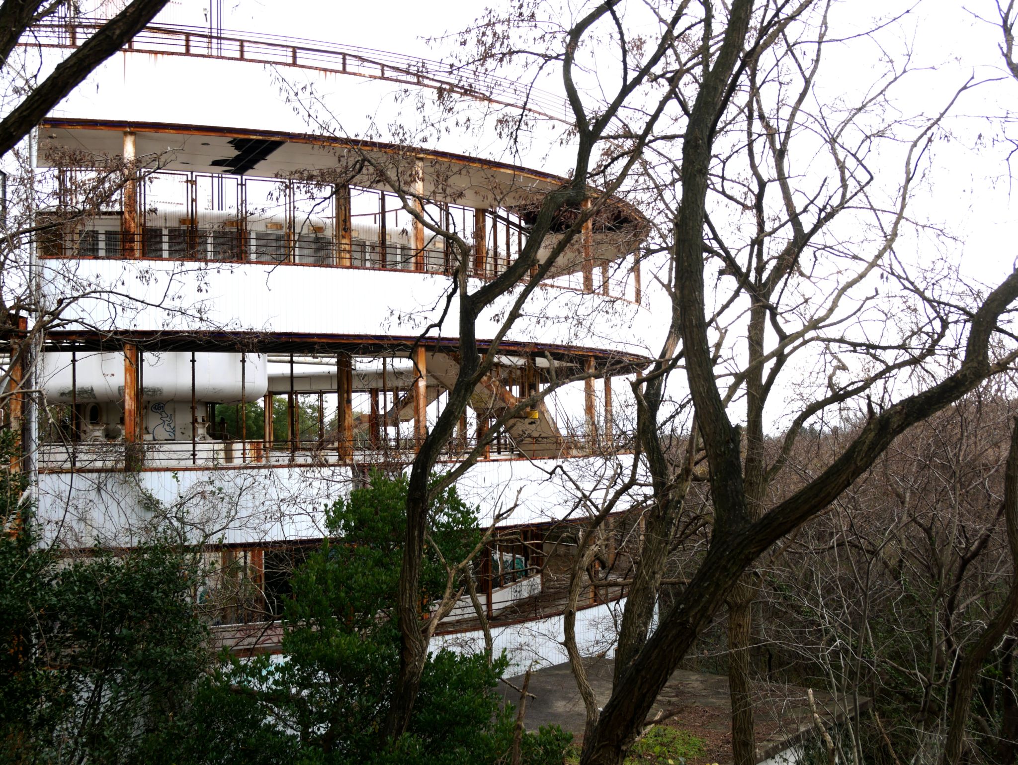 岡山県で最も有名な廃墟の一つで、鷲羽山ハイランドのすぐ下にある元ホテルの建物です。