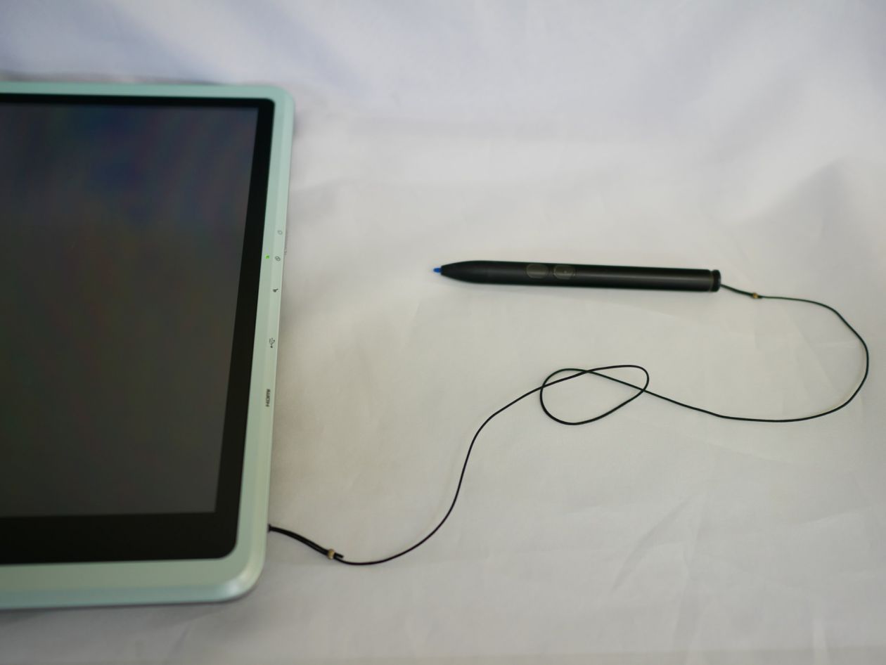 タッチパネルは静電容量式ですが、細かい字が書き易いように先の細いタッチペンがついています。