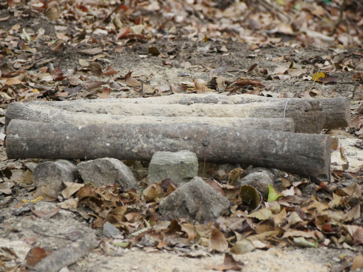 手前から三番目の木の棒に針金っぽい物が巻きつけてあるのがそれでしょうか。