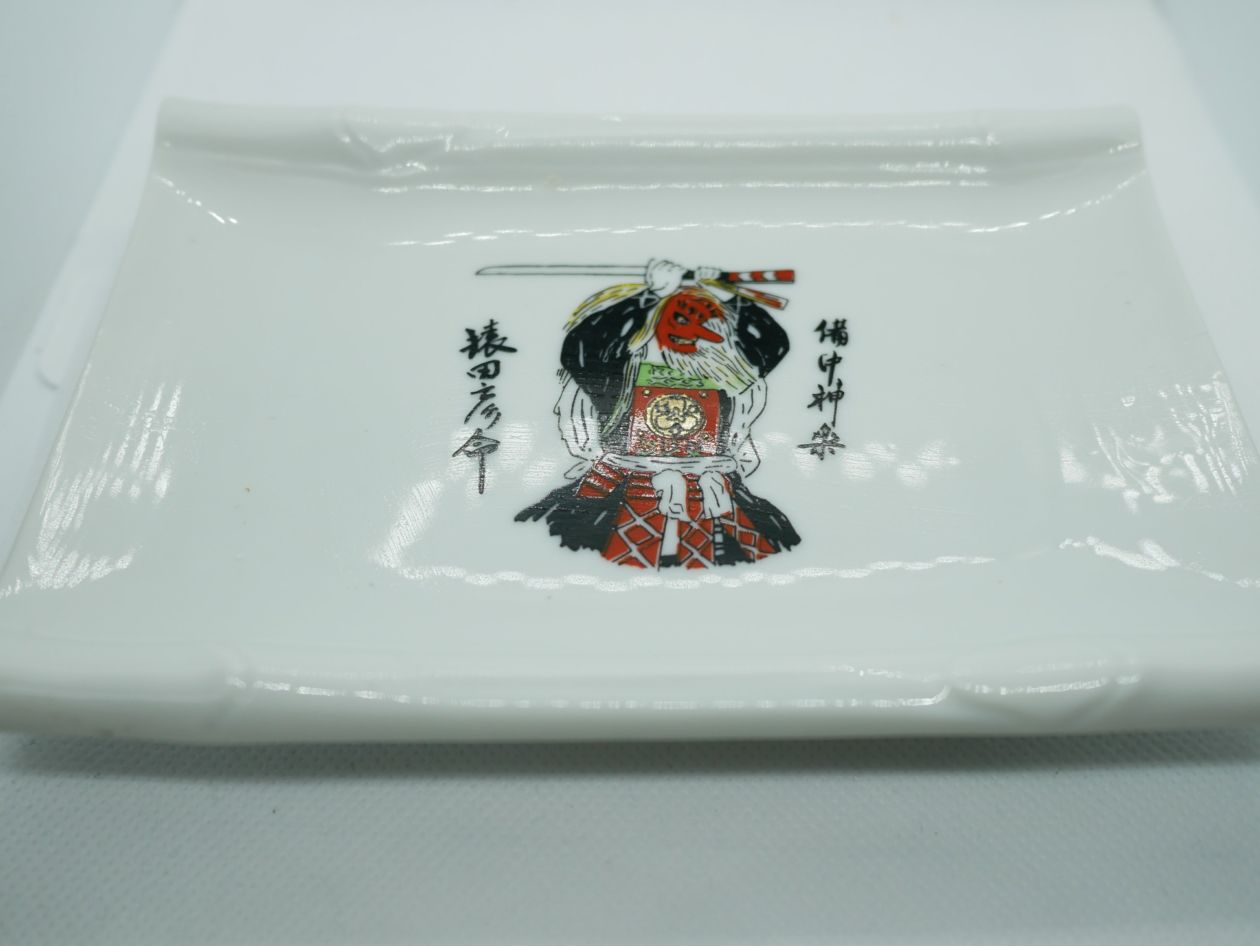 先日、吹屋ふるさと村で食事をしていると備中神楽の絵が描かれた食器を見かけました。