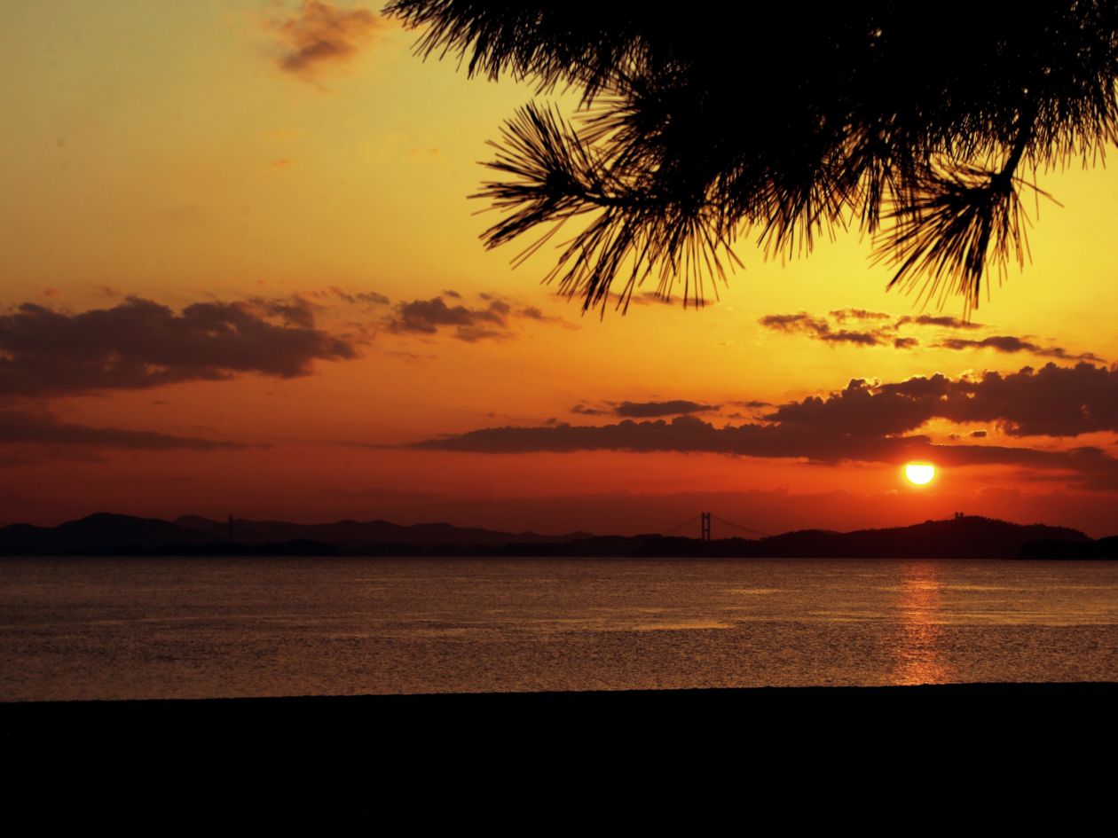 玉野市の渋川海水浴場で夕日を楽しんできました。