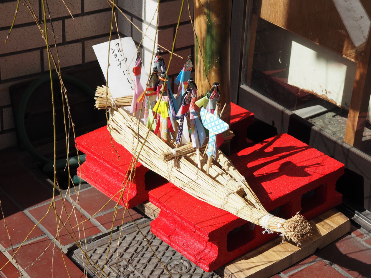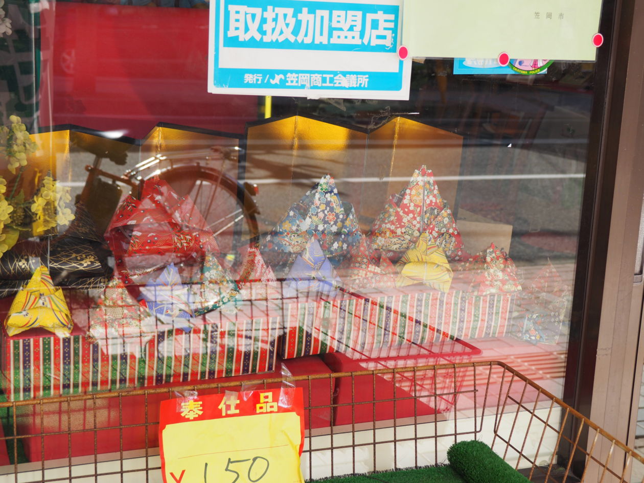 お雛様を飾っているお店には上の写真の旗が掲げられています。