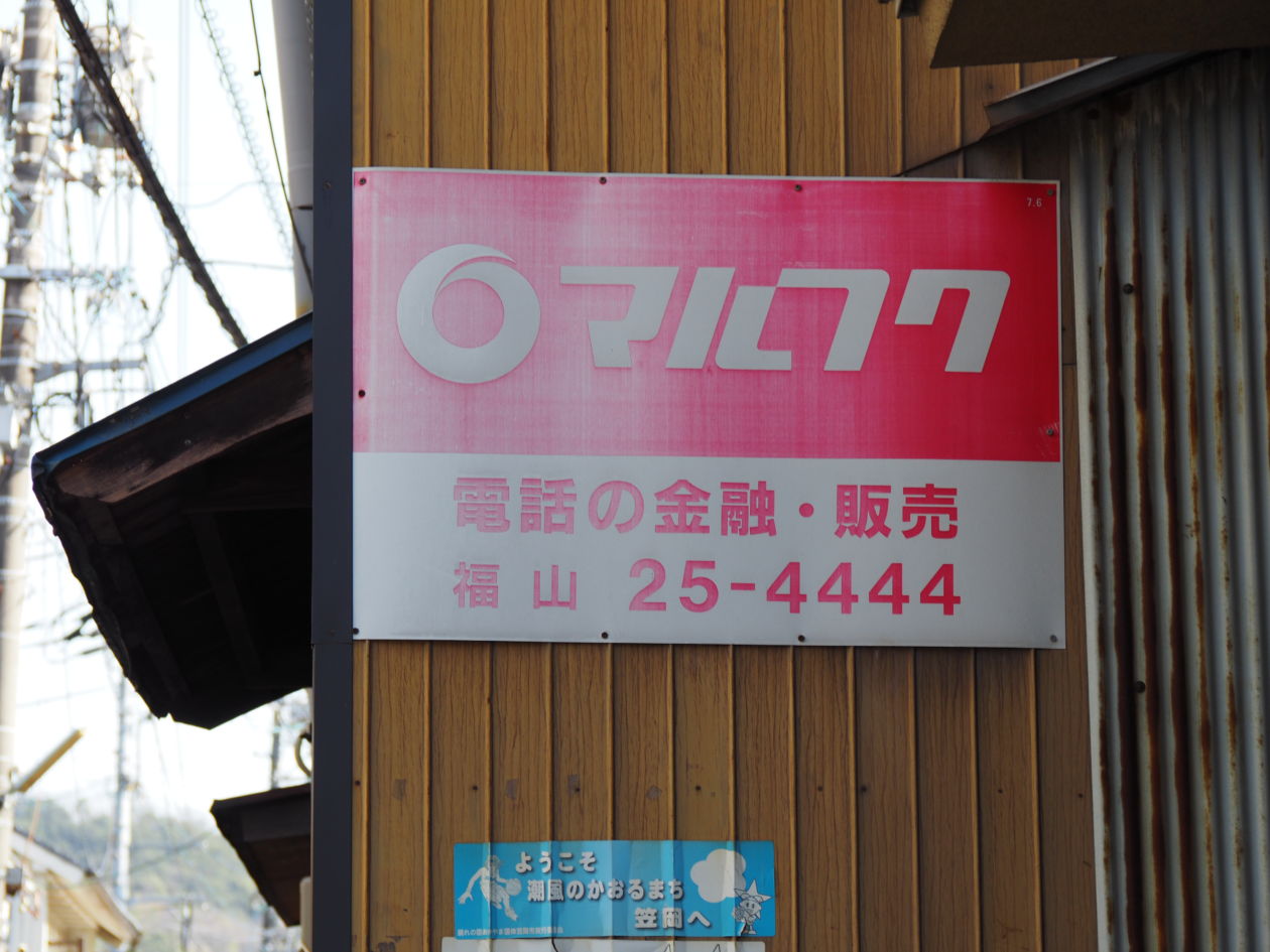 笠岡市の駅前にある西本町商店街でマルフクの看板を見かけました。