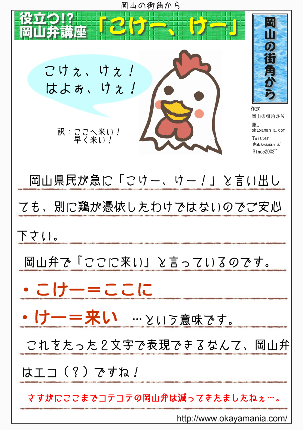 関連リンク:50音順岡山弁辞典
