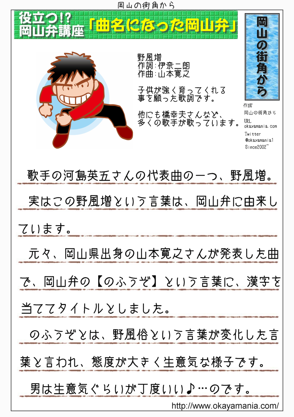 子供が強く育ってくれることを願った歌ですが、実はこの野風増という言葉は岡山弁に由来しています。